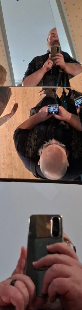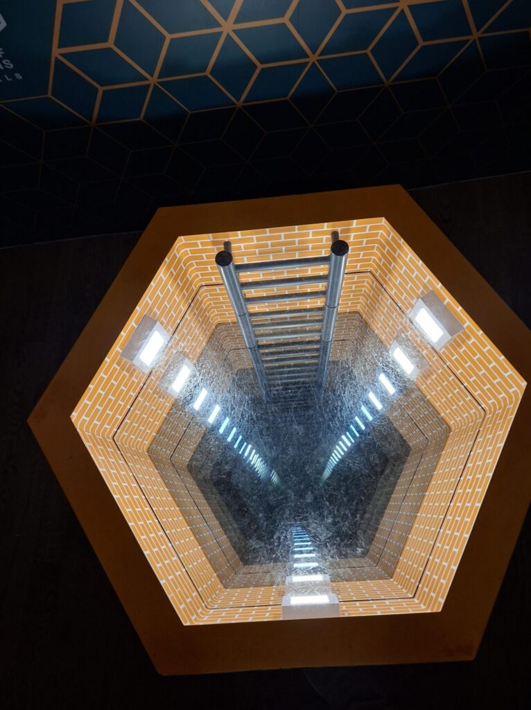 My favorites tended to be the pair of rooms playing with lights and the handful of exhibits based on mirrors. The above image show the top of my head is a fun little item where angled mirrors allow you to see yourself and the room from multiple angles. That’s a single photo showing more or less every angle of myself.