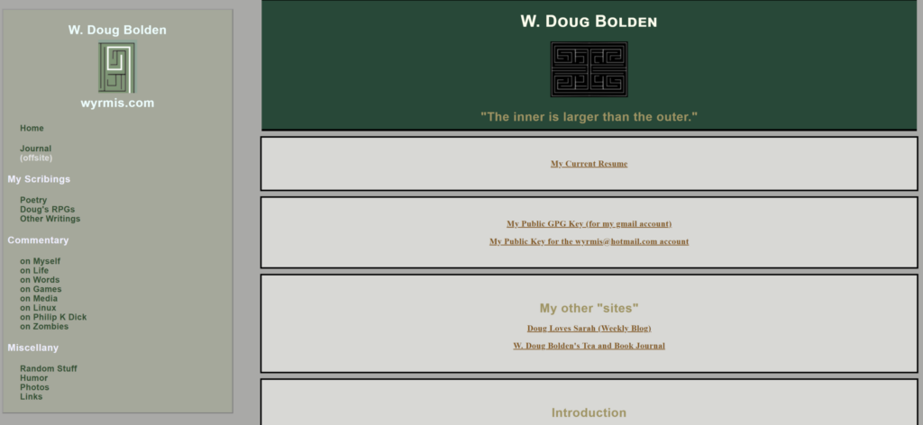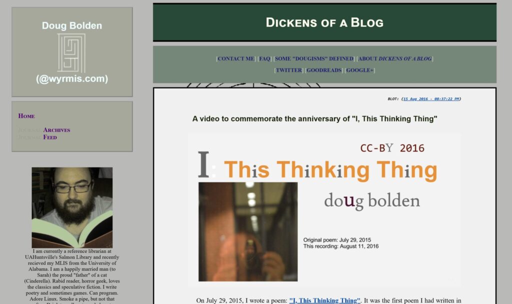 It just feels right as a term. There were years of myself in that website and blog. Lots of memories. Lots of creative output. In theory it could stay as is — online or just on my personal storage devices — but I like the idea of retaining some of it. More than that. Making it usable, again. Giving credit to past-Doug where credit is due. Also holding my past-self to a higher standard.