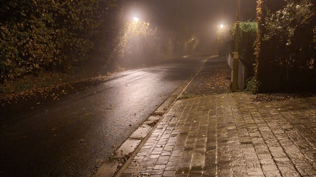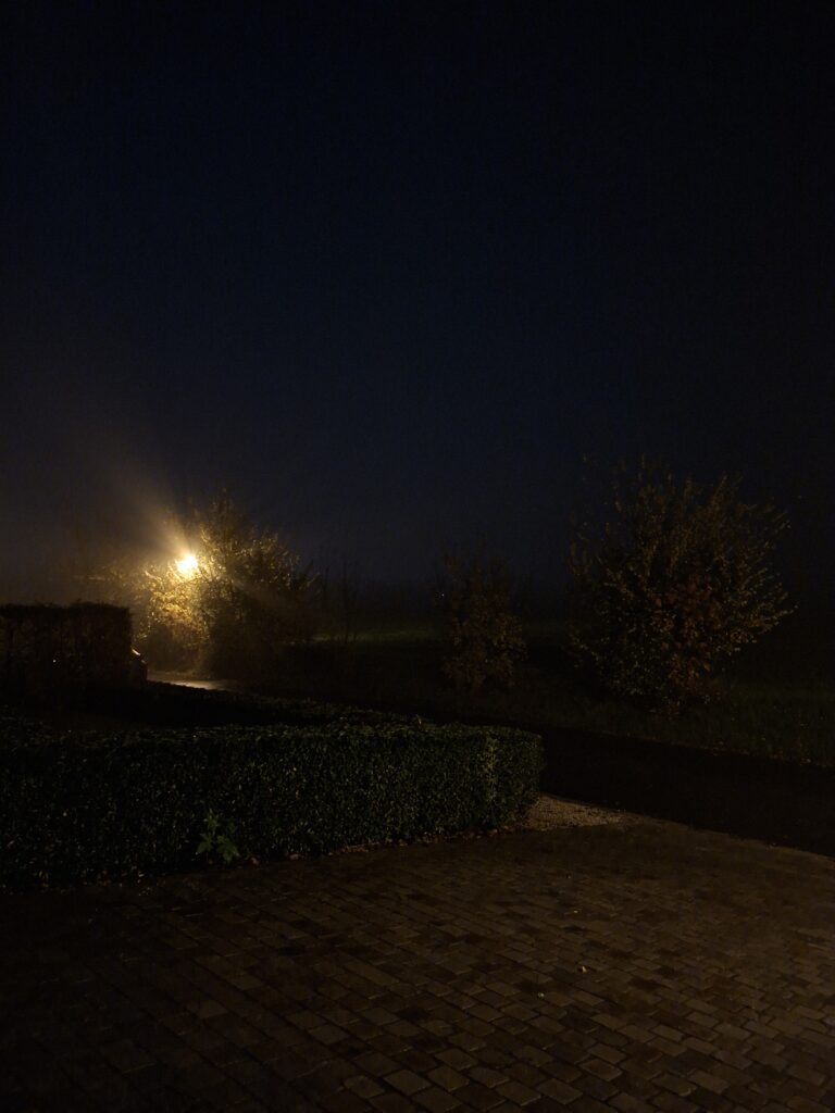 This past Saturday night [2025-11-15, ~20:00] a heavy fog rolled into Grimbergen. We have had a few foggy days since moving here, a couple of foggy nights, but this was by far the strongest.