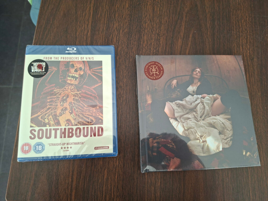 On the left is the UK Blu-Ray of Southbound. On the right is Florence and the Machine’s new album, Everybody Scream, the “Chamber Music Edition.” Not pictured, because I picked it up digitally, is Robert Rich and Markus Reuter’s Incubation.