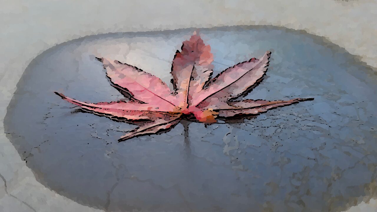 A bit of an addendum to the last post, after several rainy and very windy hours we now get mostly sunny day which is still quite windy. Doing a quick run around the house to check for damage, caught a fun effect where leaves blown about by the morning bluster had caught up on the cement and caused a kind of “attractor” force to protect the water from the sun and the wind and evaporation so there are these little micro-puddles around them.